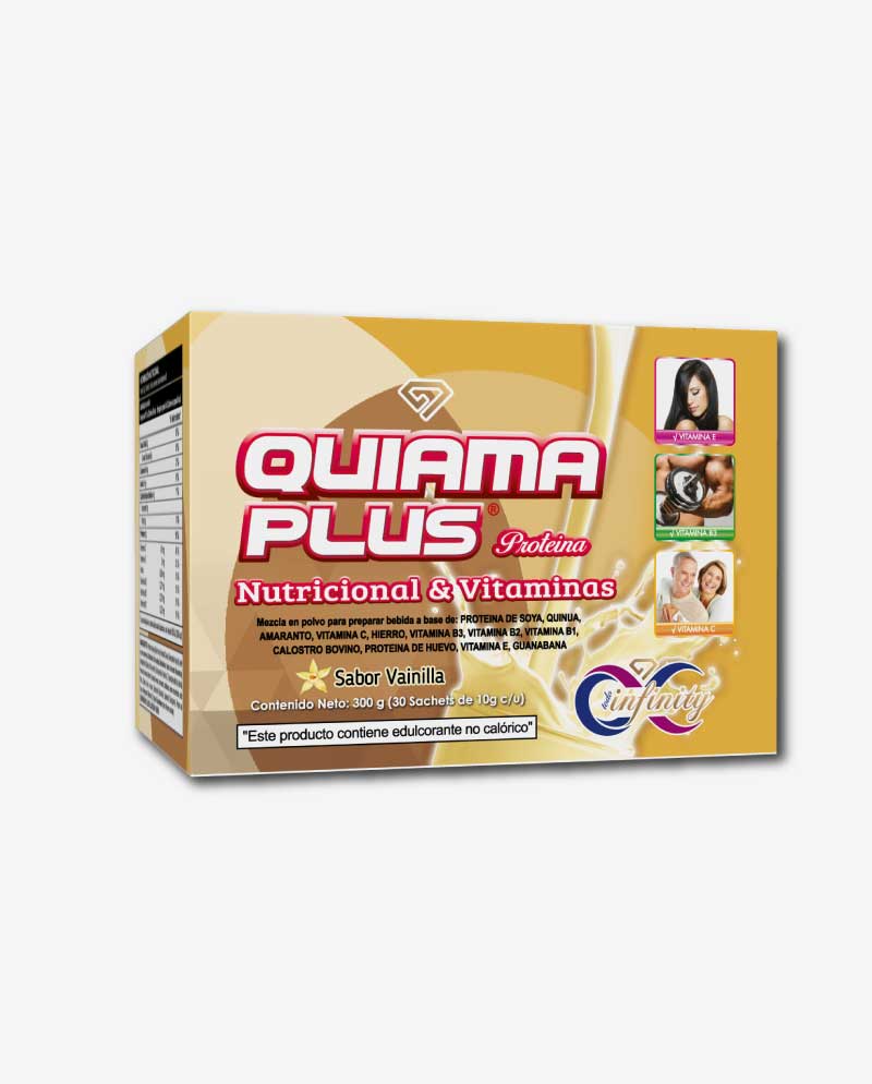 Mezcla en polvo para preparar bebida a base de Proteína de Soya, Quinua, Amaranto, Vitamina C, Hierro, Vitamina B3, Vitamina B2, Vitamina B1, Calostro Bovino, Guanábana, Proteína de Huevo y Vitamina E.